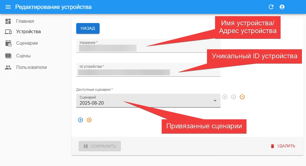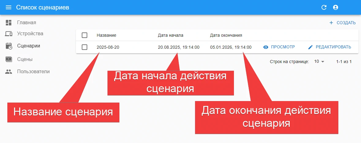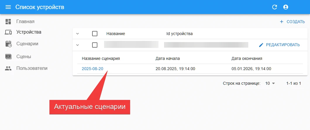 У каждого устройства может быть несколько сценариев, как с разными сроками работы, так и с одинаковыми или пересекающимисмя по времени.